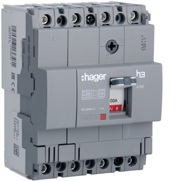 HDA101L Автоматичний вимикач x160, In=100А, 4п, 18kA, Тфікс./Мфікс.