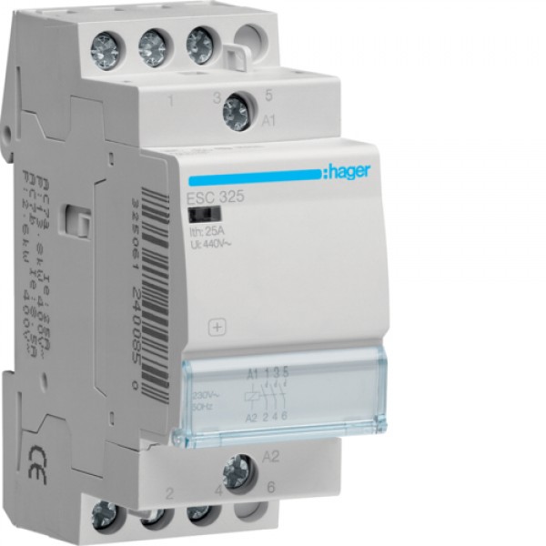 Контактор Hager 25A, 3НО, 230В, 2м (ESC325)