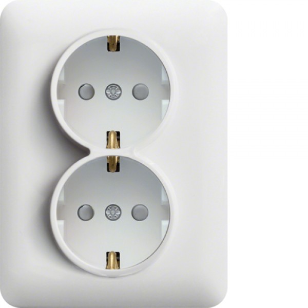 Розетка Hager подвійна з з/к з захистом контактів Lumina-2, біла, 16А/230В (WL1260)