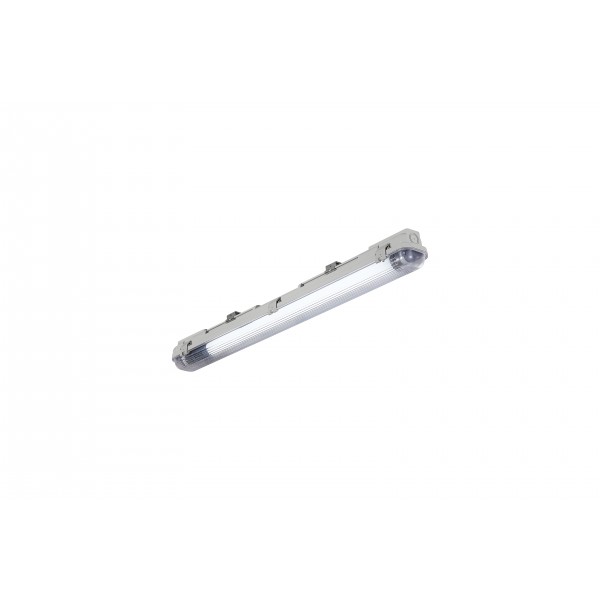 Всепогодный светильник поставляется вместе с сменными светодиодными трубками ToLEDo T8. Легко устанавливается с помощью кронштейнов из нержавеющей стали для потолочного монтажа. Корпус и рассеиватель из поликарбоната.