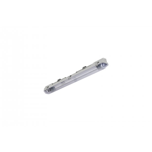 Всепогодный светильник предназначен для светодиодных трубок ToLEDo T8 (поставляется без лампы). Легко устанавливается с помощью кронштейнов из нержавеющей стали для потолочного монтажа. Корпус и рассеиватель из поликарбоната.