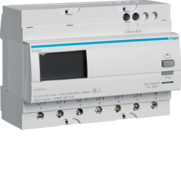 3-Фазный счетчик Hager прямого подключения Mbus 100А, 7м (EC368)