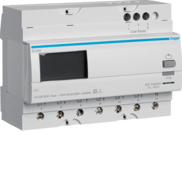 3-Фазный счетчик Hager прямого подключения Modbus 100А, 7м (EC366)