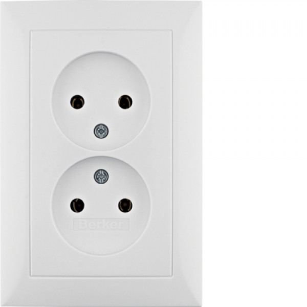 Розетка Berker без з/к двойная, цельная, пол.белизна, 16А/250В S.1 (6167548989)