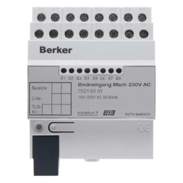Бинарный вход Hager, 8-канальный, 230В, REG, KNX (75218001)