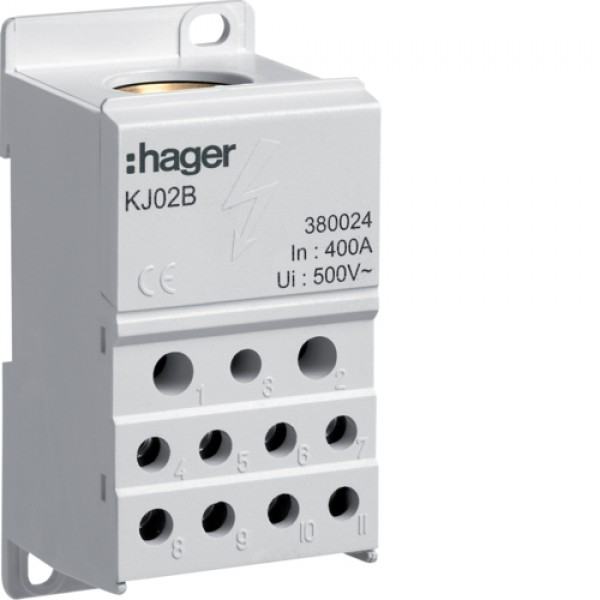 Блок разветвительный Hager 400А, ввод 1х150мм2, выход 2х25х16 и 4х10мм2, (KJ02B)