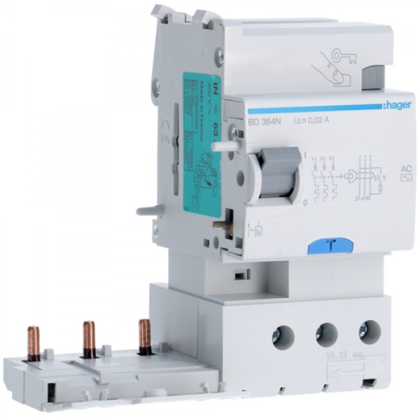 Блок устройства защитного отключения Hager 3п 63A 30mA AC (BD364N)