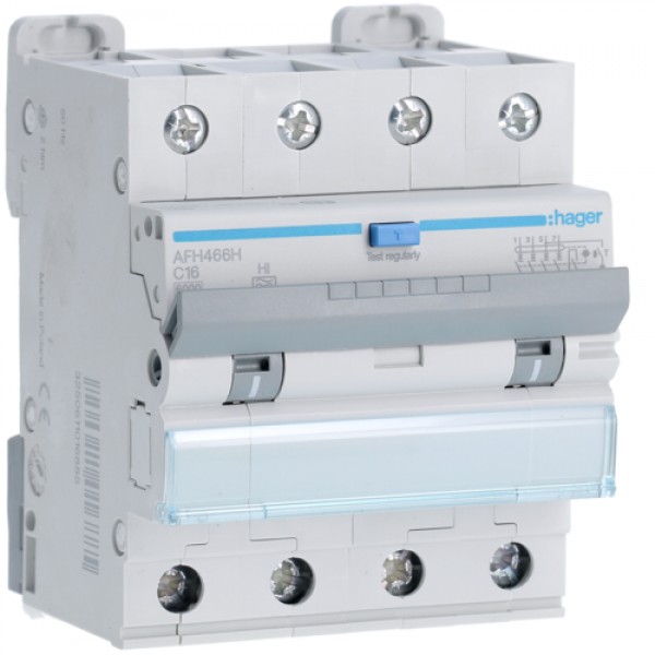Дифференциальный автоматический выключатель Hager 4P 6kA C-16A 300mA Hi (AFH466H)