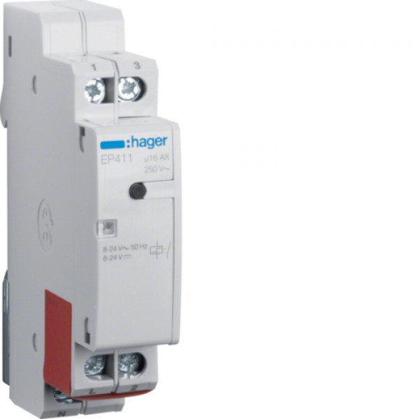 Импульсное реле Hager электронное с двумя отдельными входами, 1НО, 16А / 8-24В (EP411)