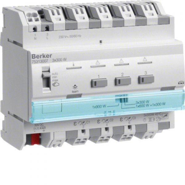 Исполнительное устройство Berker универсального диммера 3-канальный REG, до 300Вт на канал (75313007)