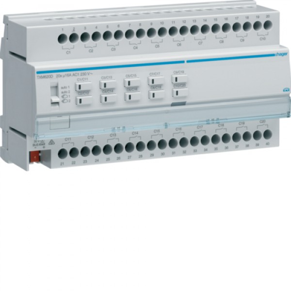 Исполнительное устройство Hager для освещения/жалюзи KNX-easylink 20/10-канальное, 16A, C-Last (TXM620D)