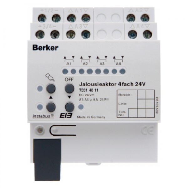Исполнительное устройство Hager управления жалюзи 6А/24В, 4-канальное, REG, KNX (75314011)