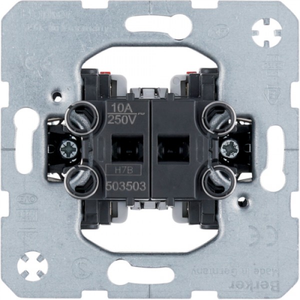Кнопка 2-клавишная Berker 2НО (механизм), раздельные входящие клеммы, 10А/250В (503503)