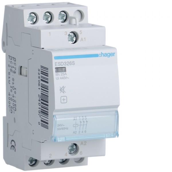 Контактор Hager беcшумный 25A, 3НЗ, 24В (ESD326S)