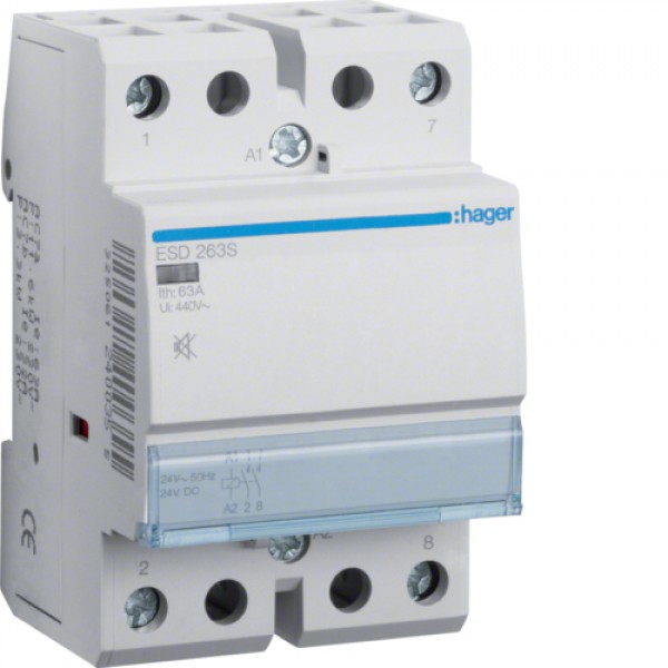Контактор Hager беcшумный 63A, 2НО, 24В (ESD263S)