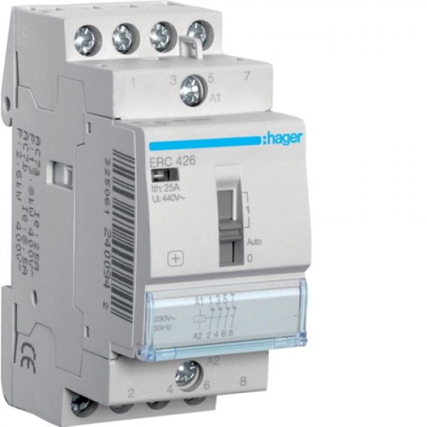 Контактор Hager с ручным управлением 25A, 4НЗ, 230В (ERC426)
