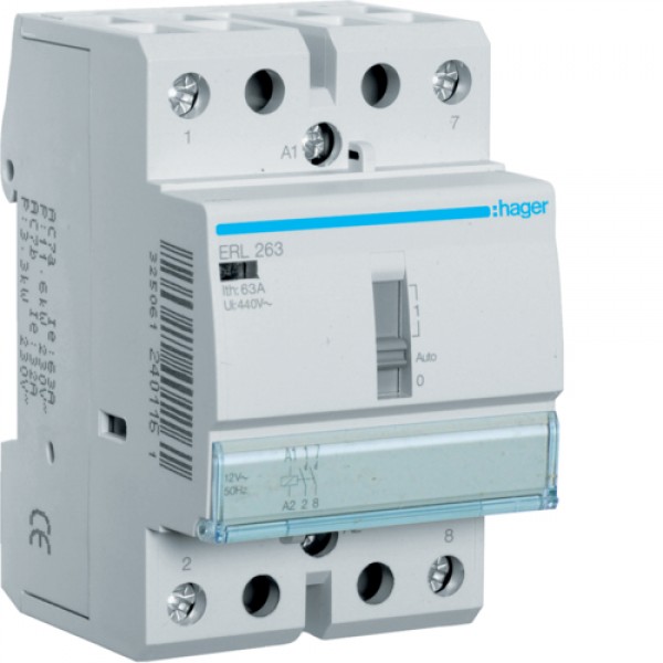 Контактор Hager с ручным управлением 63A, 2НО, 12В (ERL263)