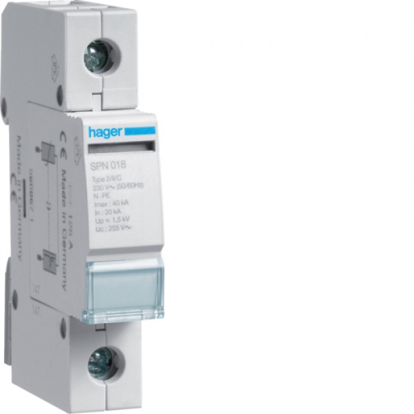 Разрядник Hager класса 2, для ТТ-сетей 1п, 30kA, Up<=1,25kB (SPN118)