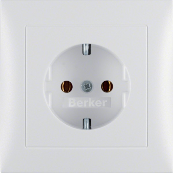 Розетка Berker с з/к цельная с рамкой, пол.белизна матовая, 16А/250В S.1/B.х (47429909)