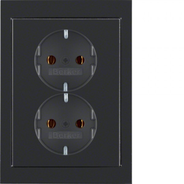 Розетка Berker с з/к двойная цельная, 16А/250В, черная, R.3 (47537005)