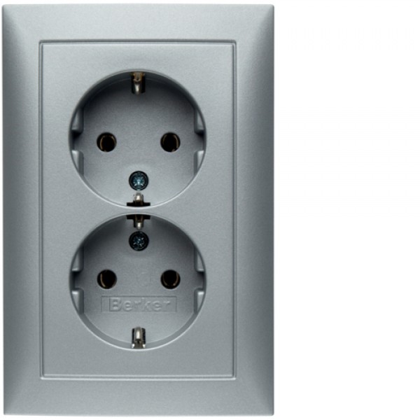 Розетка Berker с з/к двойная, цельная, алюминий 16А/250В S.1/B.х (47549939)