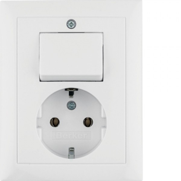 Розетка Berker с з/к с 1-кл. выключателем, цельная, пол.белизна, 16А/250В S.1 (6143568949)