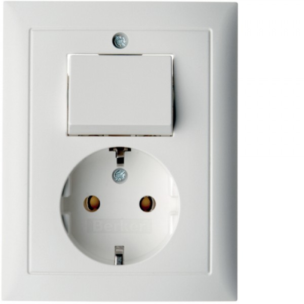 Розетка Berker с з/к с 1-кл. выключателем, цельная, пол.белизна матовая, 16А/250В S.1 (6143561949)