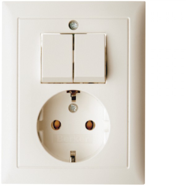 Розетка Berker с з/к с 2-кл. выключателем, цельная, белая, 16А/250В S.1 (6143558942)