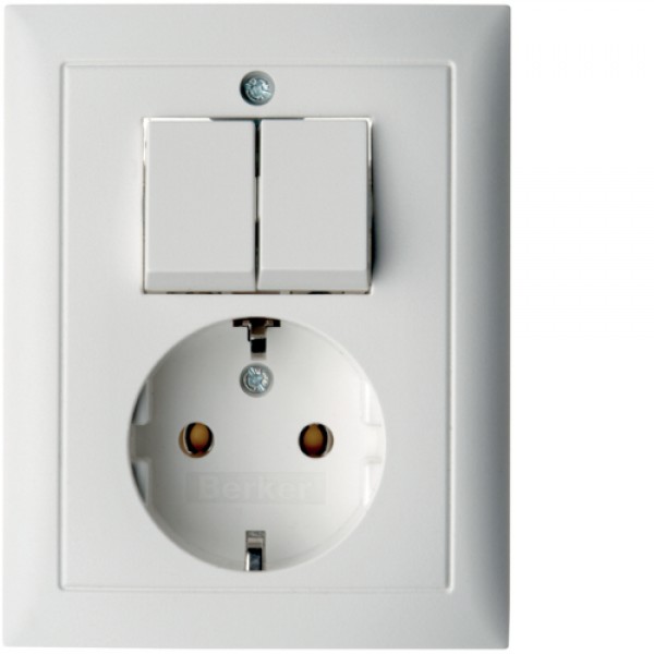 Розетка Berker с з/к с 2-кл. выключателем, цельная, пол.белизна матовая, 16А/250В S.1 (6143551949)