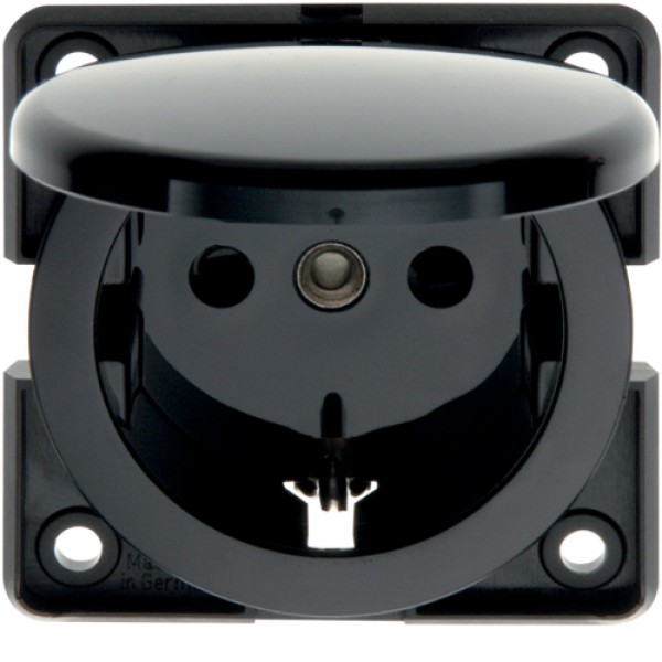 Розетка Berker с з/к с крышкой, черная, 16А/250В, MOBIL R TWIN (9419705)
