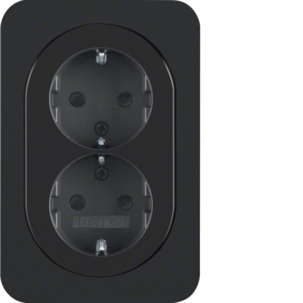 Розетка Berker с з/к с защ.контактов двойная цельная, 16А/250В, черная, R.1 (47292045)