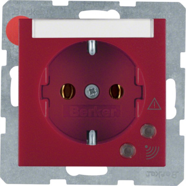Розетка Berker с з/к, защ.от перенапряжения., поле д/надписи, красная матовая, 16А/250В B.х (41081962)