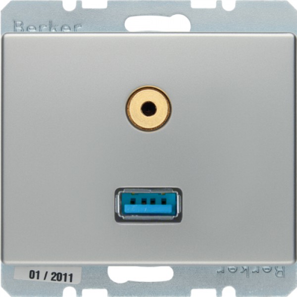 Розетка Berker USB/3.5мм аудио, стальной лак, ARSYS (3315399004)
