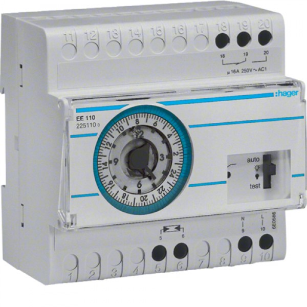 Суммеречное реле Hager подключаемым датчиком EE003, с суточным аналоговым таймером, 5м (EE110)