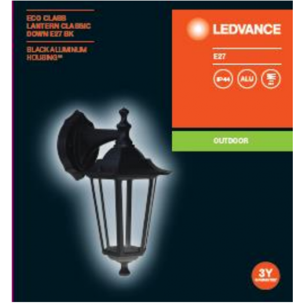 Світильник вуличний настінний Lantern Classic Down E27 60 Вт IP44 чорний Ledvance (4058075537262)