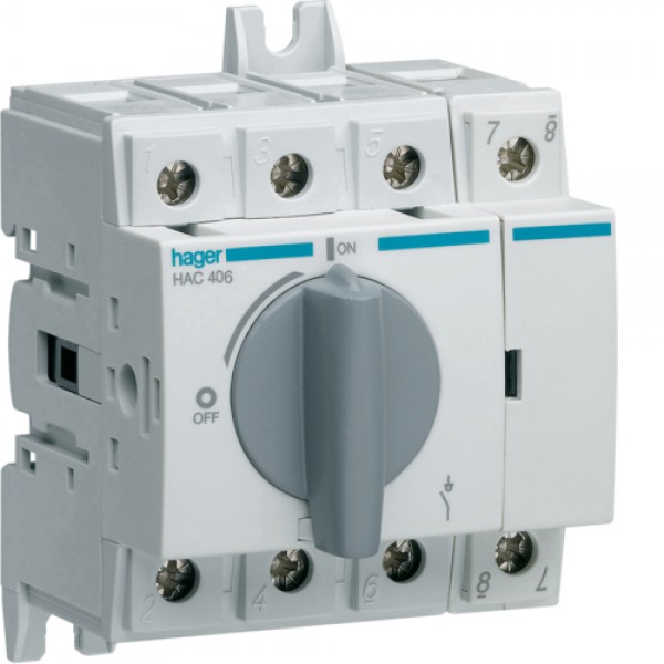 Выключатель нагрузки Hager поворотный 400/690В 63А, 4п, 4м (HAC406)