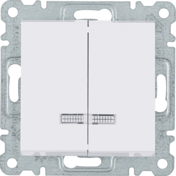 Выключатель Hager з подсветкой 2-клавишный Lumina-2, белый (WL0240)