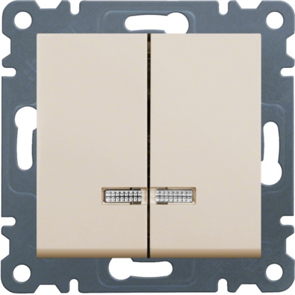 Выключатель Hager с подсветкой 2-клавишный Lumina-2, крем, 10АХ/230В (WL0241)