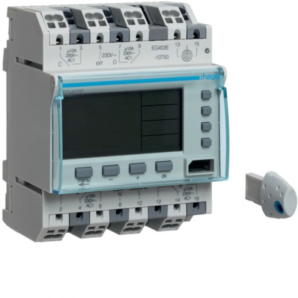 Таймер цифровий Hager тижневий, 10 А, 2НО+2НЗ, запас ходу 5 років (EG403E)