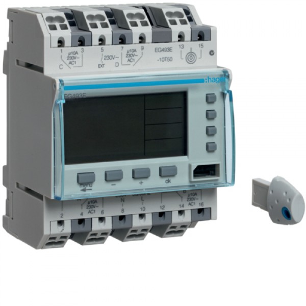 Таймер цифровий Hager, універсальний, 10 А, 2НО+2НЗ, запас ходу 5 років (EG493E)